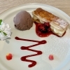 プレートになっており、濃厚なショコラジェラートとミルフィーユがソースやホイップとともに乗っていました。